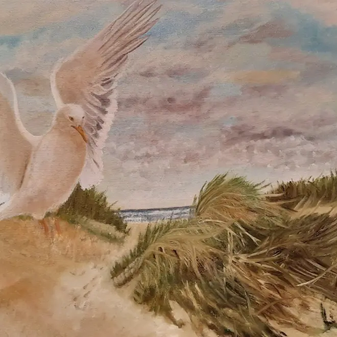 Hello! My name is Dora, born in Alkmaar. I started painting as a self-taught artist in 2007. In 2015, I began taking lessons from Jolanda Gerrmann in realistic fine painting according to the old 17th-century technique of Rembrandt. My oil paintings are realistic, humorous, and colorful. I love painting portraits, especially of animals. We often attribute human traits to animals (anthropomorphism); in my paintings, the animals behave like humans. I live in Egmond aan Zee, not far from the sea, which comes in handy. The sea has a great attraction for me and is regularly reflected in my works. In the summer of 2024, I discovered epoxy and can combine it very well with my paintings to create a 3D effect. Feel free to take a look at my site