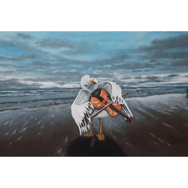 The seagull violin plays the most beautiful moving violin music. Standing in the sea, an ode to everyone who wants to listen to it.