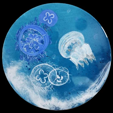 Vase en époxy avec des coquillages et des étoiles de mer. Fait main et un tube étanche pour des fleurs fraîches. A l'air magnifique naturellement dans une salle de bain mais aussi dans n'importe quel salon.