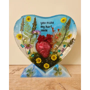 Handgemaakt schuin epoxyvaasje met ingegoten gedroogde bloemen en een rode libelle. Waterdicht buisje voor enkele natuurlijke bloemen. Altijd bloemen in huis.